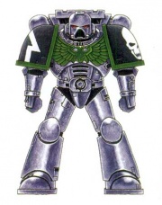 | Colours: | Gunmetal armour with black pauldrons and green aquila and pauldron trim[9] | ||