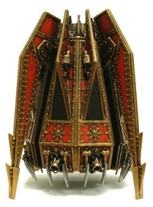 The Anvillus Pattern Dreadclaw was initially designed to insert Space Marine boarding forces onto enemy spaceships. As such they have minimal profile and a heavily armoured hull. The craft is mounted with a series of Melta cutters, originally to slice through the outer hull of a ship. Unlike some earlier boarding craft, the Dreadclaw is also a fully independent dropship capable of returning their cargo to friendly ships.[2]