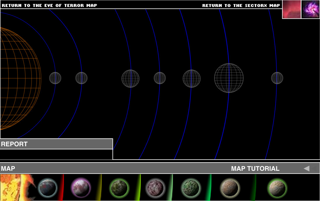 A wireframe view of the Chinchare System with planets images from space in order below. Taken from the Eye of Terror 2003 Worldwide Campaign Event website.