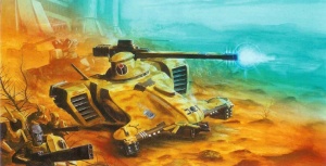 The Hammerhead is protected by a nano-crystalline alloy, the composition of which is as yet unknown.[3b] While lightweight and malleable, the metal is strong and corrosive-resistant, providing good protection while cutting down on weight. The Hammerhead's armour can be penetrated by Imperial anti-tank weaponry, such as battle cannons, lascannons and krak missiles.[4]