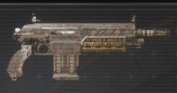 The autogun fires high-velocity rounds and is equipped with an underslung flashlight[21a] and iron-sights.[21b] When used by the Orphratean Purebred the weapon is coloured matt-black.[21a]
