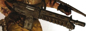 The Cadence “Spectre” Assault Device is an autogun chambered for standard caseless rounds. The Spectre features a tri-mag shot selection system allowing the flexibility of freely switching between multiple magazines. It also mounts an integral shotgun. The Spectre is one of the few widely know weapons produced by Cadence.[13c]