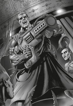 Marius took his weaponised instrument to war with him on the fields of Isstvan V, leading a cohort of similarly armed and stimulated Marines into battle at the Drop Site Massacre. Now completely depraved, Marius had fixed wraps of skin from the Maraviglia dead to his armour with spikes, had his ears removed and his eyes forever sewn open. His mouth was forever unnaturally wide open, contorted by the foul experience of the Maraviglia.[4i]