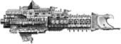 Furthermore, some ship types build at Voss, like the Endeavour, Endurance and Defiant classes, feature a prominent mid-ship corridor, dividing the forward hull from the rear section, due to the fact that Voss, in difference to the rest of the Mechanicus, lacks knowledge of the science of magnetic containment fields. In case of a magnetic field failure the containment of the vast energies produced by a ship's plasma reactor can not be guaranteed. To prevent such a failure from threatening the main magazine or causing a reactor meltdown, the plasma reactor and engine rooms have to be separated from the rest of the ship by the mid-ship corridor. In case of a containment field failure, the mid-ship corridor will break, physically disconnecting the rear from the rest of the ship.[22a]
