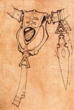 Rangers often arm themselves with Ranger Long Rifles or Needle Sniper Rifles[17] as this allows them to make the most of their individual approach. Another benefit of working alone is their ability to move through terrain and choose the optimum position for sniping enemy emplacements. They are also adept at hiding in undergrowth and other types of cover due to their stealthy nature. However, this flexibility comes at the expense of protection, as this armour is useless against bolter fire. Another piece of Ranger equipment is a Cameleoline cloak and Gloom Field generator[20], which helps Rangers to blend into their surroundings, especially in poorly-lit environments [4]. They also ride atop Shroud Runner Jetbikes[12], draped in Shroud Runner Cloaks[14]. Finally, many Rangers captured by the Imperium possessed sensor spikes containing something that was determined to be a psychotelemetric receiver. It is suspected that this device allows Rangers to use the Webway to see distant places.[4]