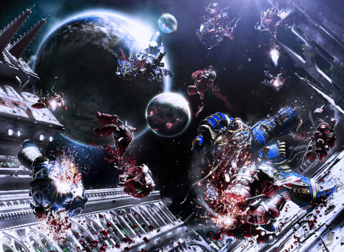 Large Ultramarines forces arrived to relieve Terra of the Terra by Traitor forces in the final stages of the Horus Heresy, destroying most of their fleet in orbit and securing the Throneworld. They then retook Luna in the first battle of the Great Scouring.[119]