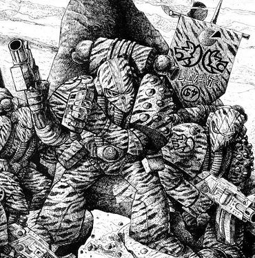 Russ eventually led the Wolves out from Terra to try and engage Horus. However, though wounding Horus at the Battle of Trisolian, the Space Wolves were badly mauled and Russ fell into a coma.[42a] Though they managed to escape Trisolian, the leaderless Wolves were besieged by pursuing traitor forces at Yarant. During the battle, Russ awoke only when Corax arrived with the Raven Guard, awake long enough to greet the Ravenlord and give Bjorn the Spear of Russ. In the end, the Space Wolves were able to evacuate Yarant with Corax's aid but Russ remained unconscious.[39] Russ eventually recovered on Deliverance and then the Wolves linked up with Lion El'Jonson and his Dark Angels. Together they besieged the Death Guard Homeworld of Barbarus. Personifying the role of the Emperor's executioners, the resurgent Space Wolves went on a rampage of vengeance against all traitors they could find, purging the world of Vezdell Secundus of a large Alpha Legion force.[66]