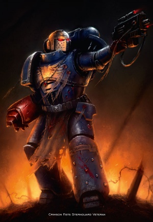 The Sternguard are members of the 1st Company of a Space Marine Chapter. Their primary role is to cover a fighting retreat by the rest of a Space Marine force, holding the enemy at bay with their superior training and ranged weaponry.[2a]